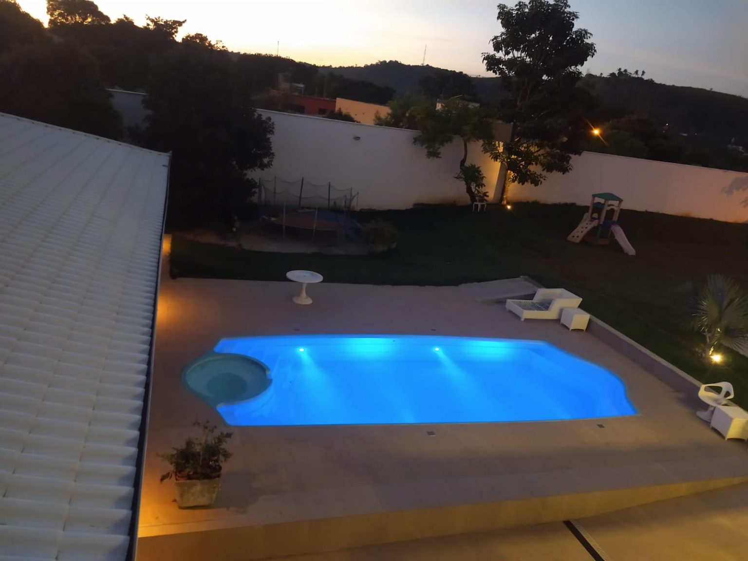 Linda e moderna, casa nova, com acabamento toda em porcelanato, lote com área de 2000m² sendo 730 m² de área construída. 5 suítes, sendo uma máster com 140 m2. Vista de 360ª definitiva de Belo Horizonte e arredores. Suíte Master com 140 m2. Duas salas sendo uma com pé direito de 7 metros. Cozinha americana. Piscina com spa, e sauna. Excelente espaço gourmet interligado com ampla área de lazer. Espaço para salão de jogos e academia. Lindo jardim, em condomínio fechado com segurança 24 horas, restaurante, mercearia e quadras.